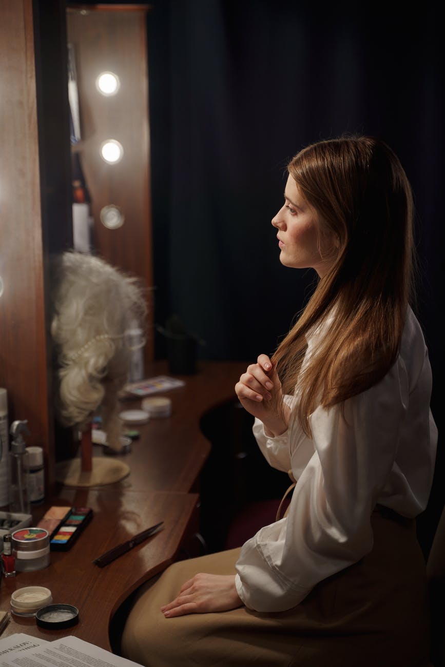 “That’s better”. She brushed the wig out and fitted it correctly again before continuing with her makeup.