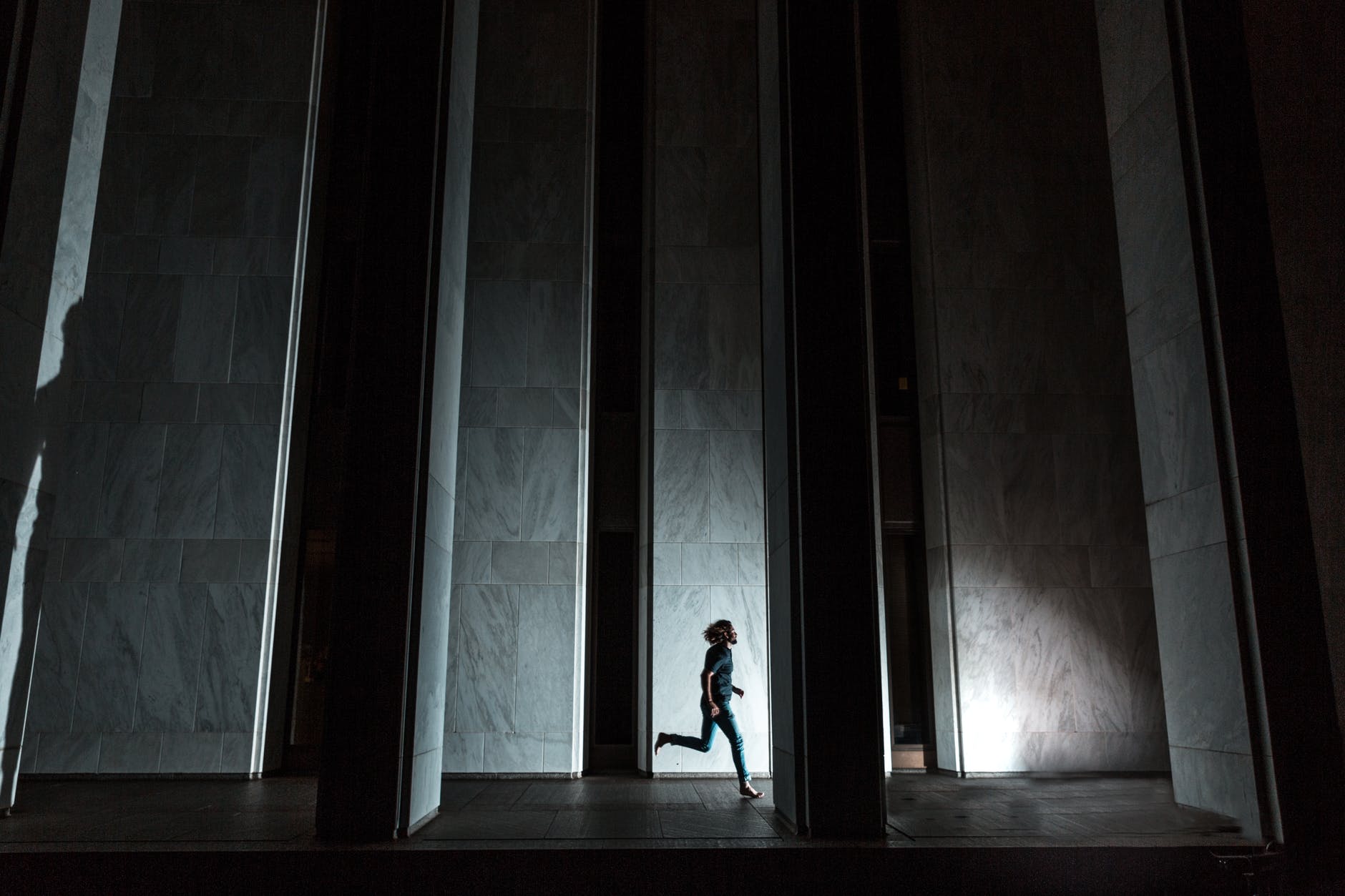 The hall seemed to go on forever, each door housing a small glass window reflecting back the flickering lights above, creating imaginary shadows to watch her. Lara hadn’t turned around since she started running but a dead end was fast approaching. She took a glance behind her but saw nothing. The hallway was empty, Derek hadn’t followed her, or if he had he’d gone elsewhere. Lara’s eyes darted back and forth scanning the hallway for a place to hide. She began testing each door but they were locked.